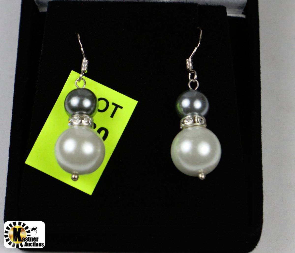 #28-GREY/WHITE SEASHELL PEARL EARRINGS W/.925 HOOK