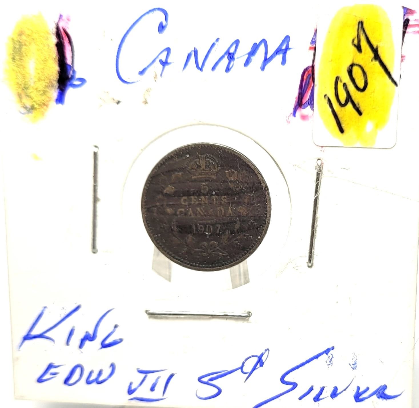 28) KING EDWARD VII 1907 SILVER 5 CENT COIN, 92.5%