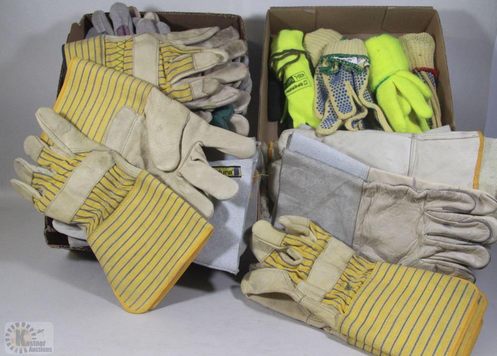 28 PAIRS OF ASSORTED GLOVES LEATHER + COTTON