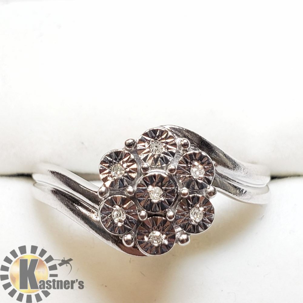 28) SILVER 7 DIAMOND RING, SIZE 7