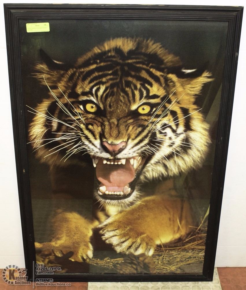 28"X36" WOODEN FRAMED TIGER PICTURE