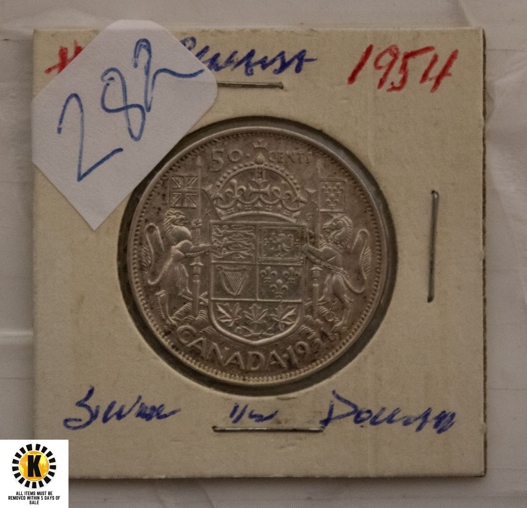 282)1954 CANADIAN SILVER HALF DOLLAR