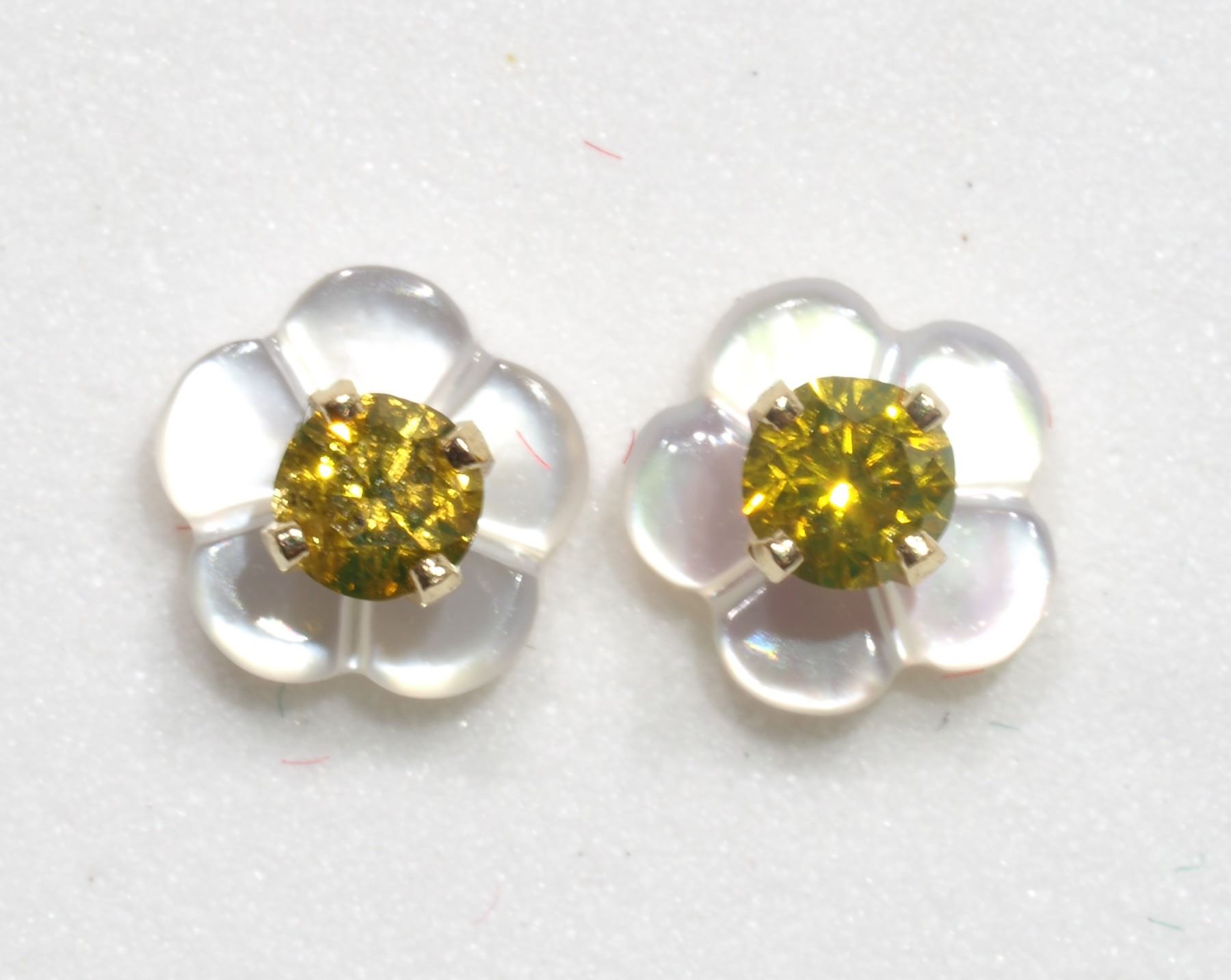 29-SG16- 14KT GOLD DIAMOND (0.125CT) WITH MOTHER OF PEARL JACKET 2-IN-1 EARRINGS. JEWELRY
