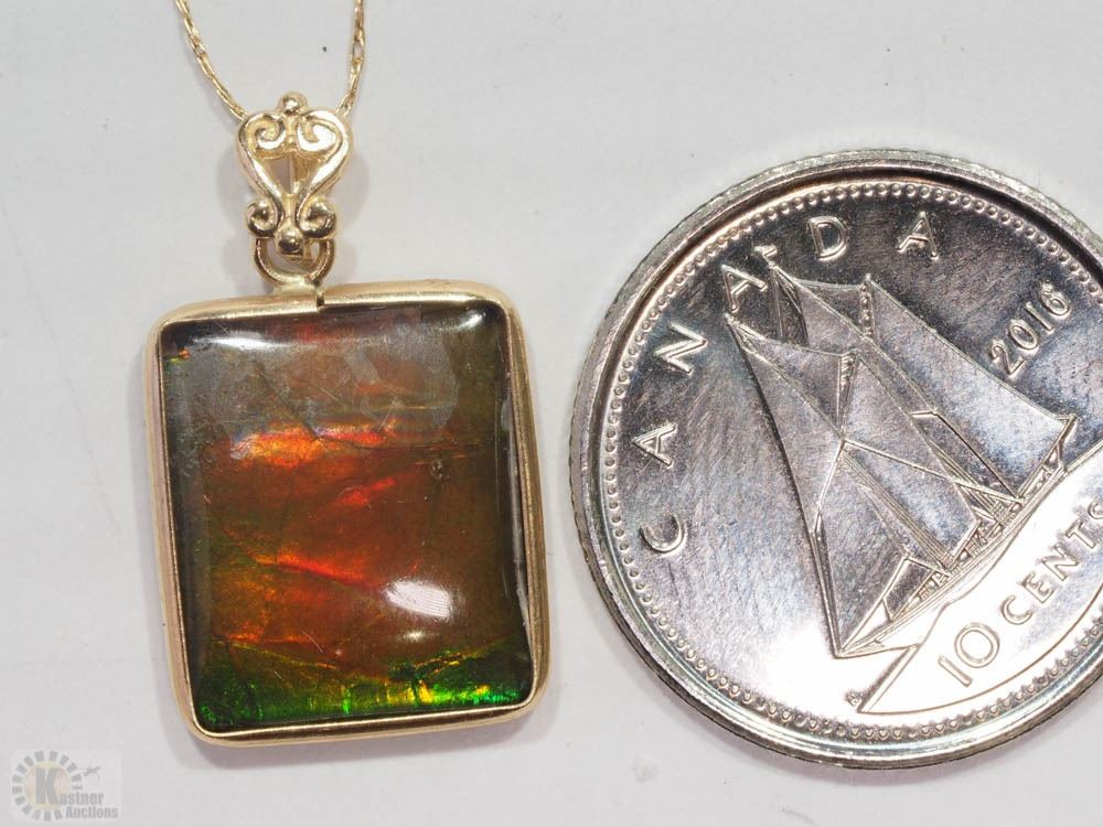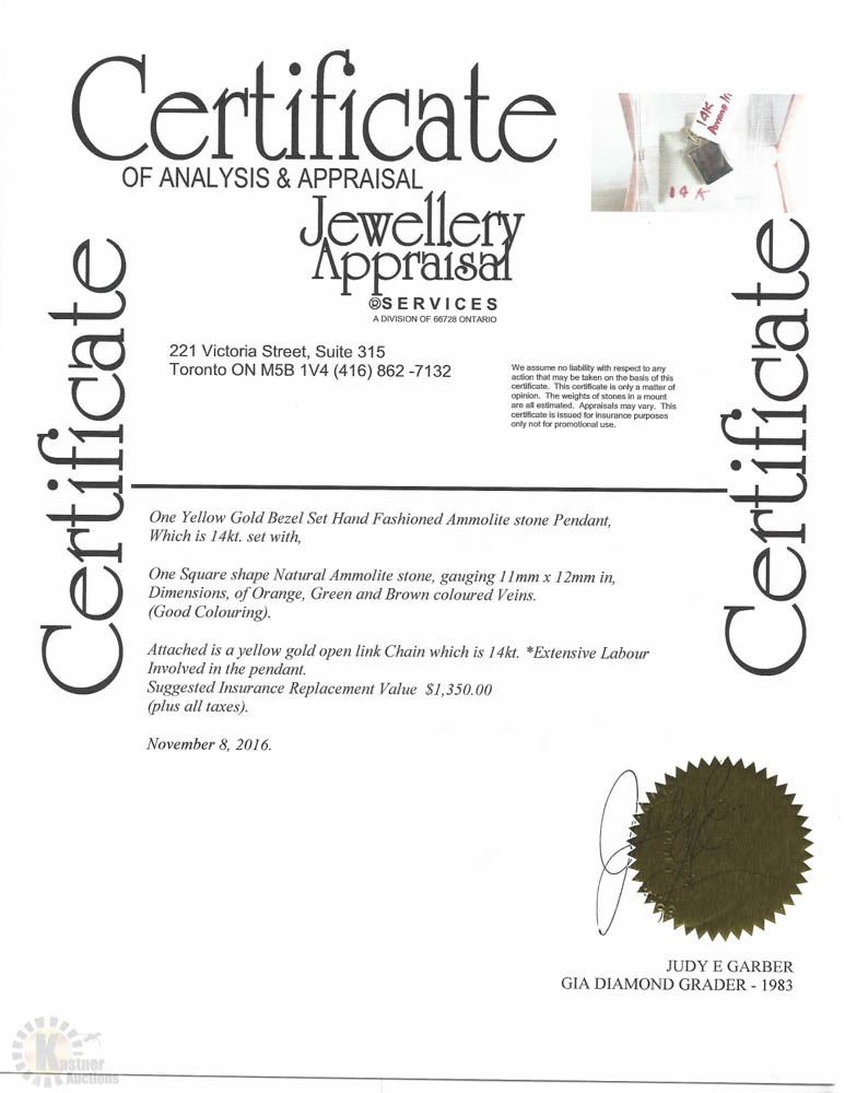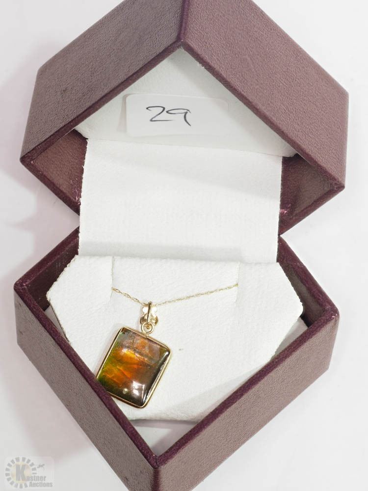 14KT YELLOW GOLD AMMOLITE(11MM X 12MM) PENDANT NECKLACE W/ COA - SUGGESTED REPLACEMENT VALUE $1,350.00