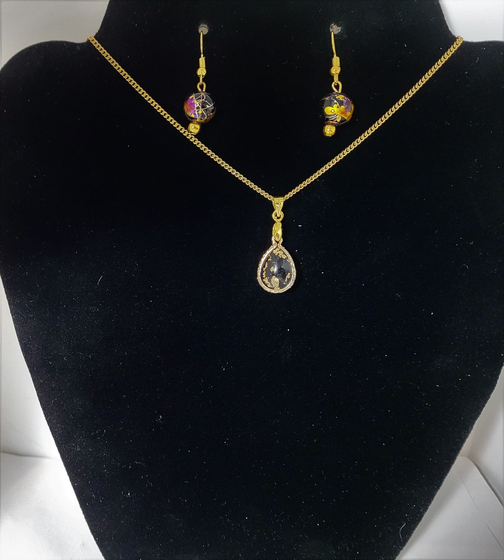 FLAKES ON 18" CHAIN AND COORDINATING TITANIUM CRYSTAL DROP EARRINGS ON NICKLE FREE FISH HOOK WIRES. JEWELLERY***ITEM LOCATED IN LETHBRIDGE AB