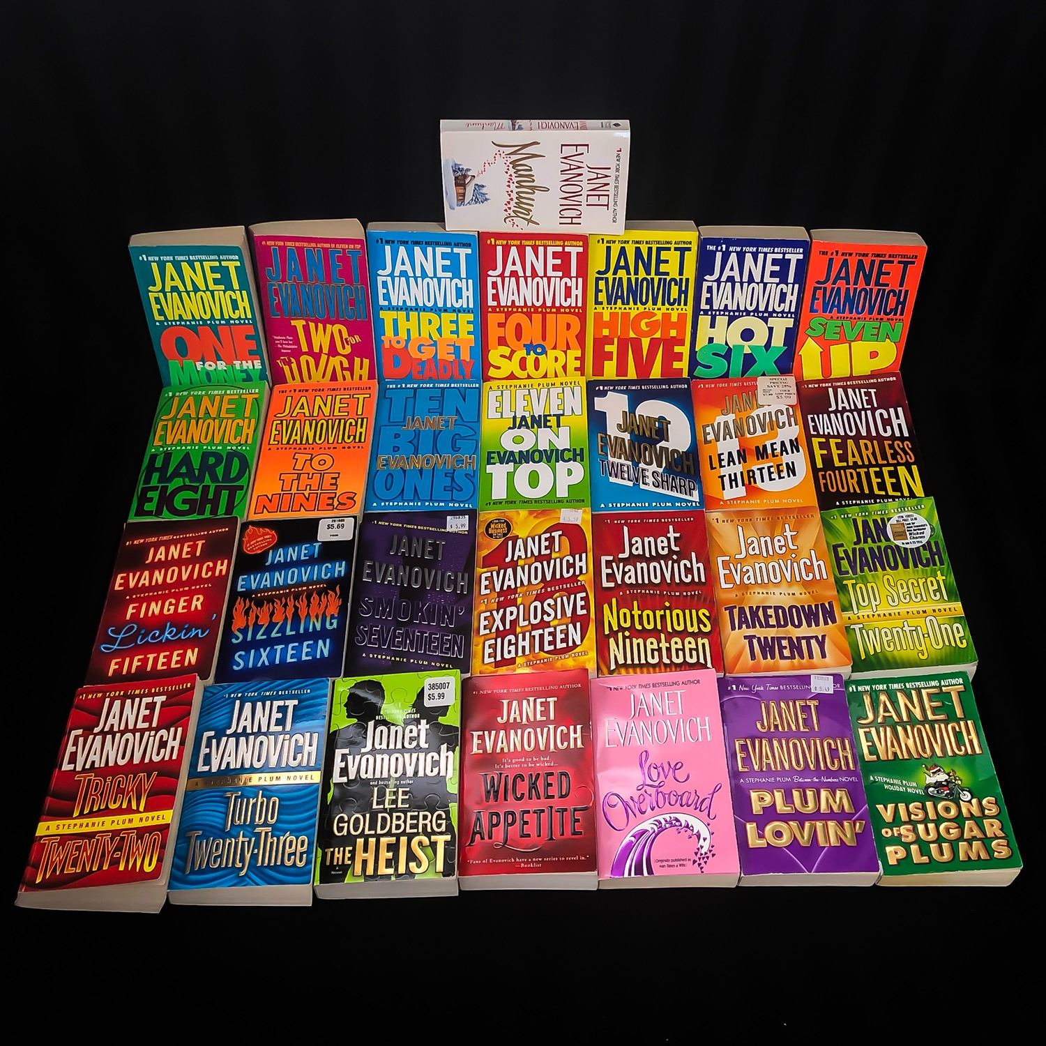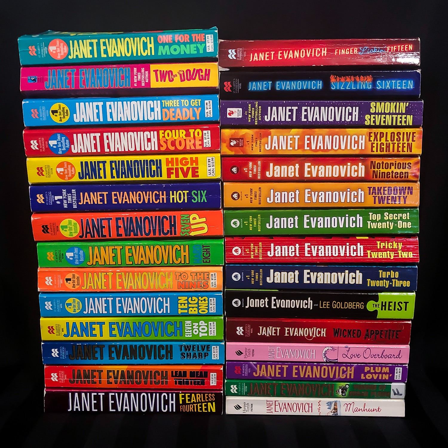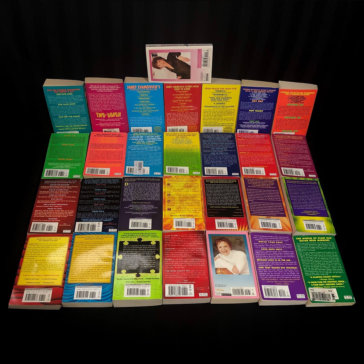 #8023 - LOT OF 29 JANET EVANOVICH - STEPHANIE PLUM NOVELS. THIS IS A SERIES OF BOOKS BY JANET - BOOKS ARE NUMBERED IN TITLES UP TO 23. THIS SERIES IS COMPLETE UP TO BOOK #23 - BOOKS #1-23 PLUS 6 OTHER TITLES BY JANET EVANOVICH
