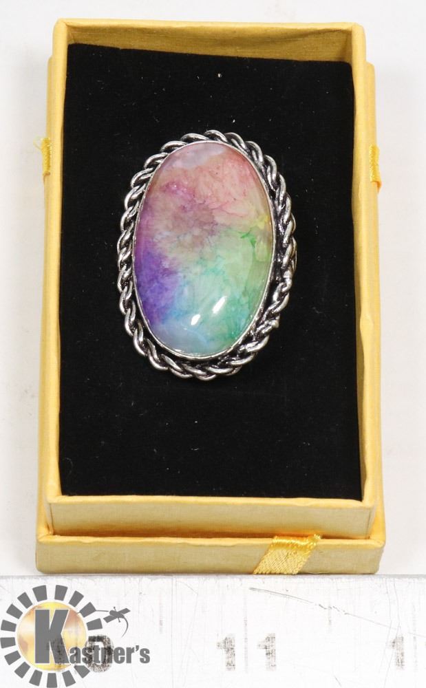 #29-RAINBOW SOLAR QUARTZ GEMSTONE RING/SIZE 8