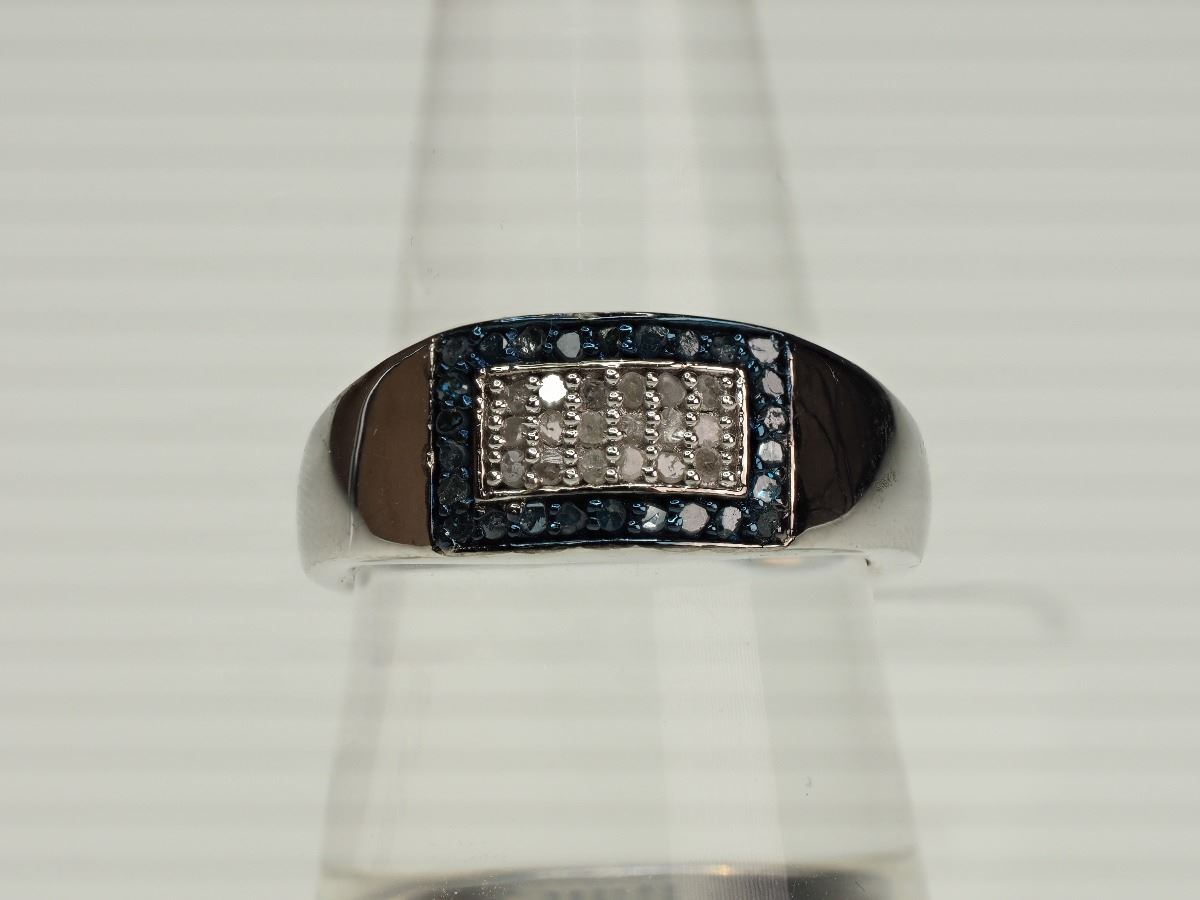 #29-STERLING SILVER BLUE AND WHITE DIAMOND