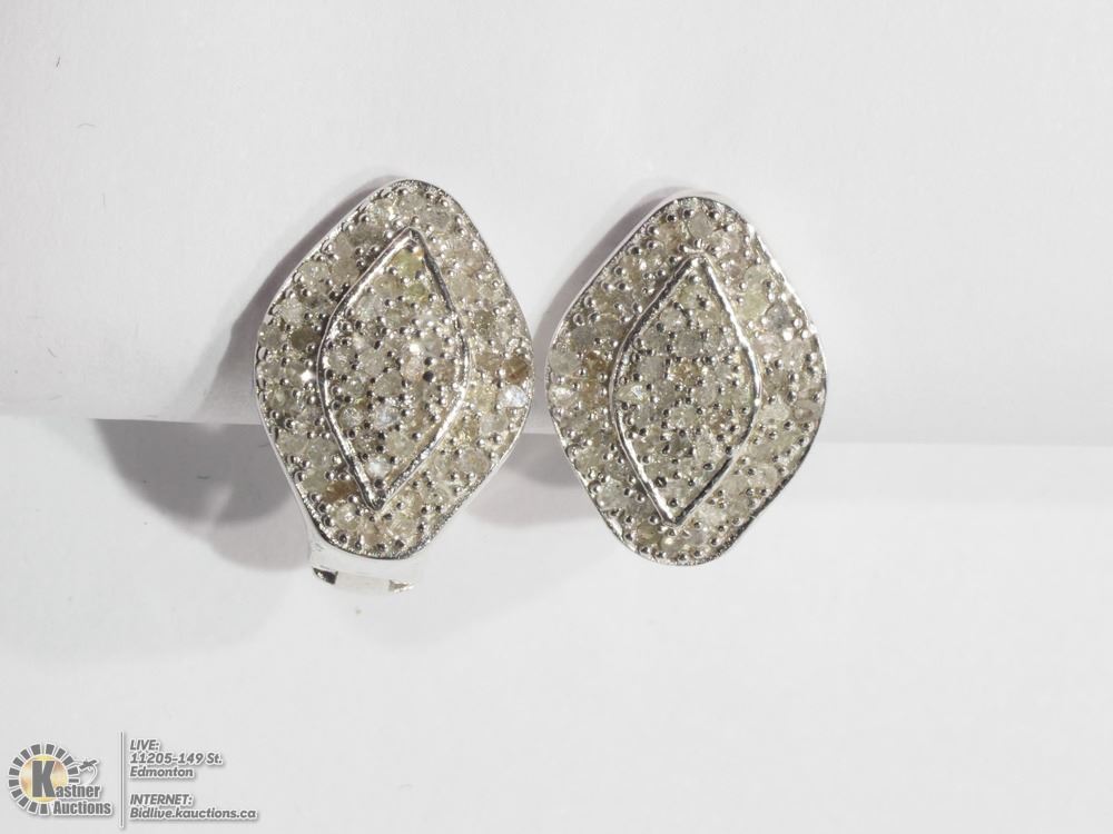 29-LS34- STERLING SILVER DIAMOND CLUSTER (0.50CT) EARRINGS W/COA. SUGGESTED RETAIL VALUE $600.00. JEWELLERY