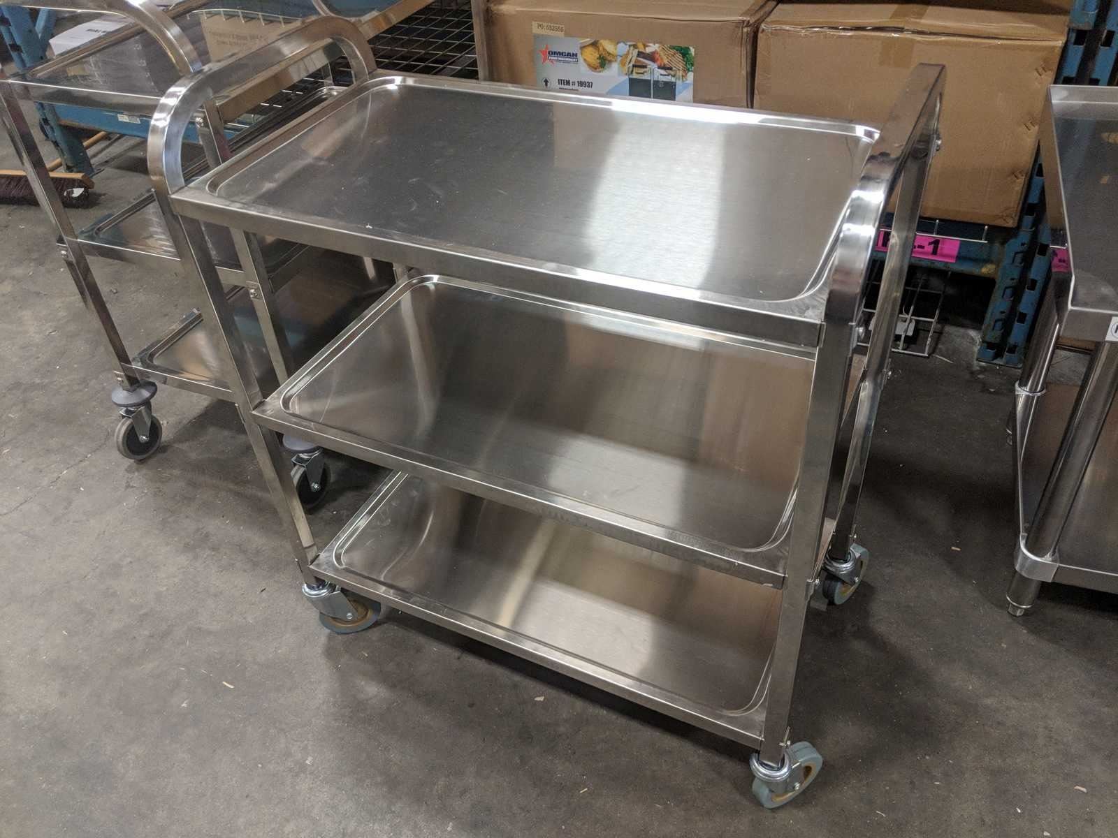 K36 NEW STAINLESS BUSSING CART, OVERALL DIMS 29” X 15.75” X 35.4”, OMCAN 24418