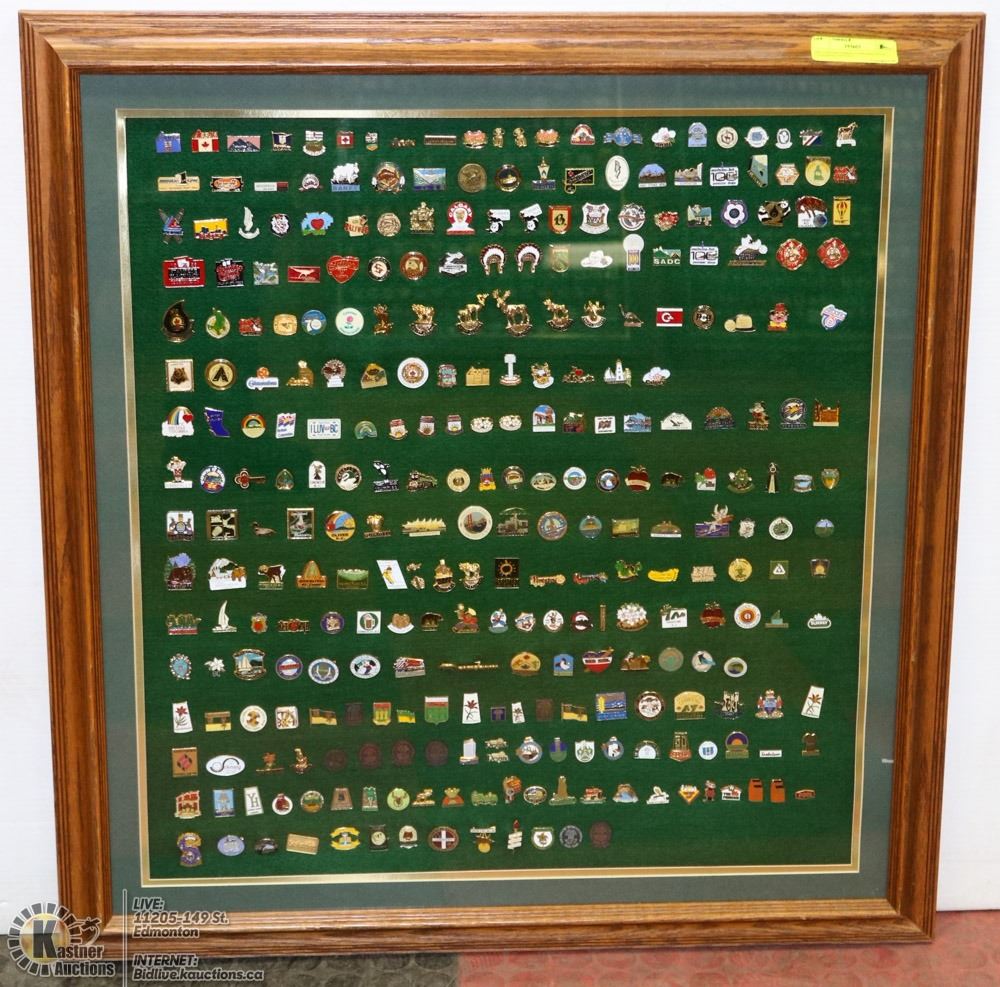 290 COLLECTIBLE CURLING PINS (FRAMED) 29 X31