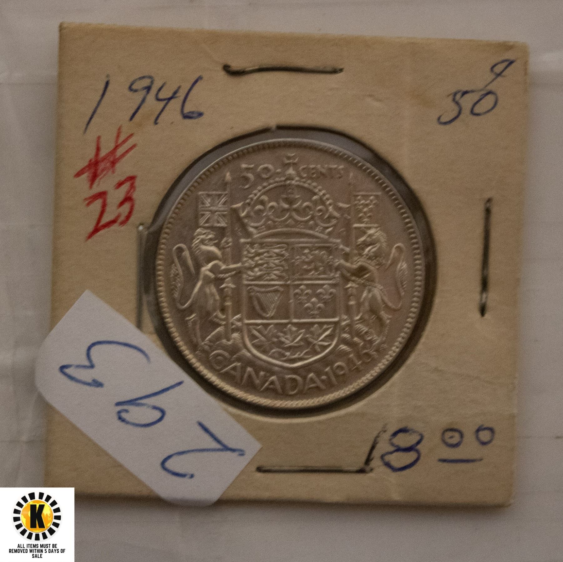 293)1946 CANADIAN SILVER HALF DOLLAR