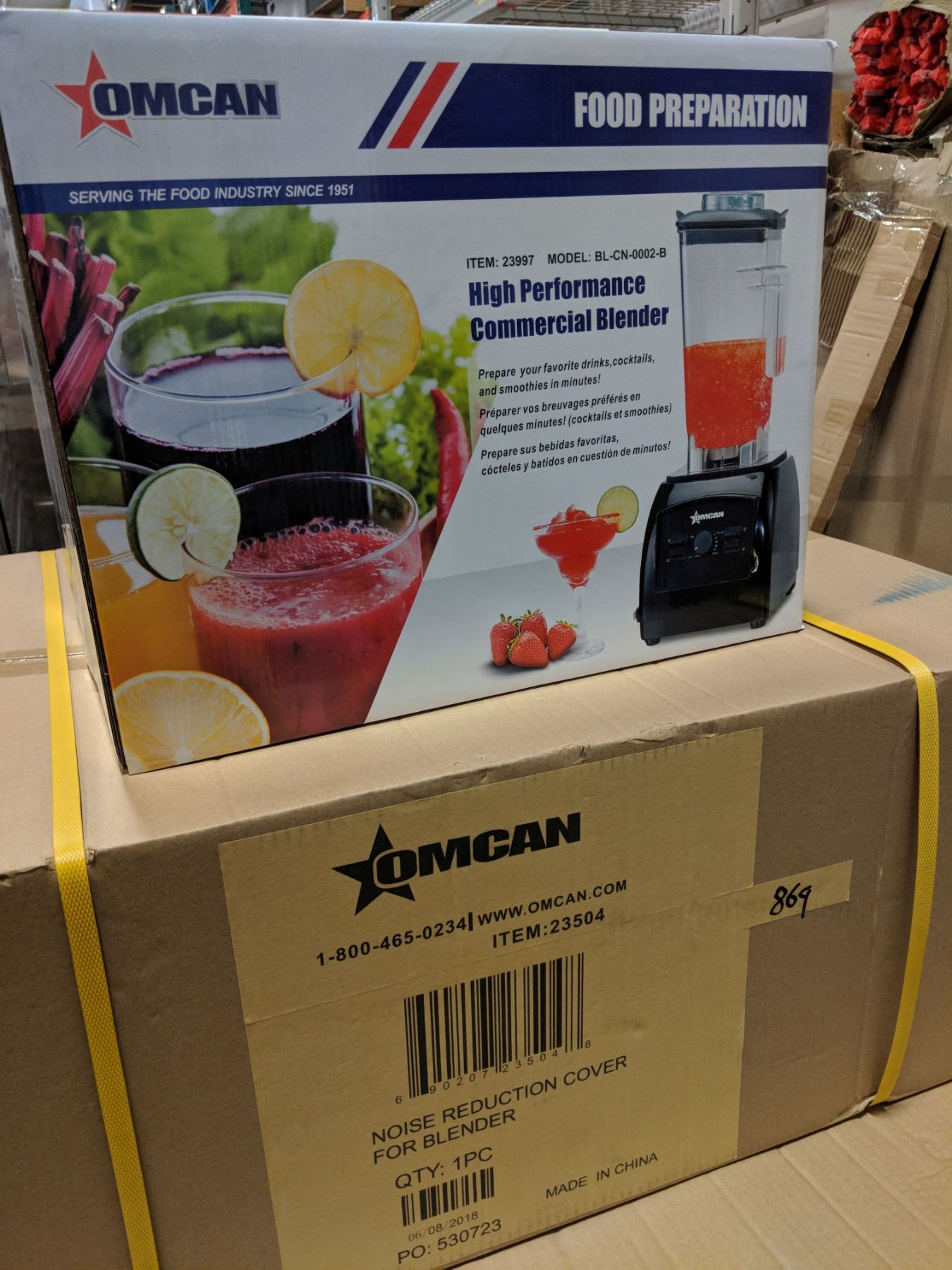 KW719 - NEW 2HP COMMERCIAL BLENDER (OMCAN 23997) WITH NOISE REDUCTION COVER (OMCAN 23504)