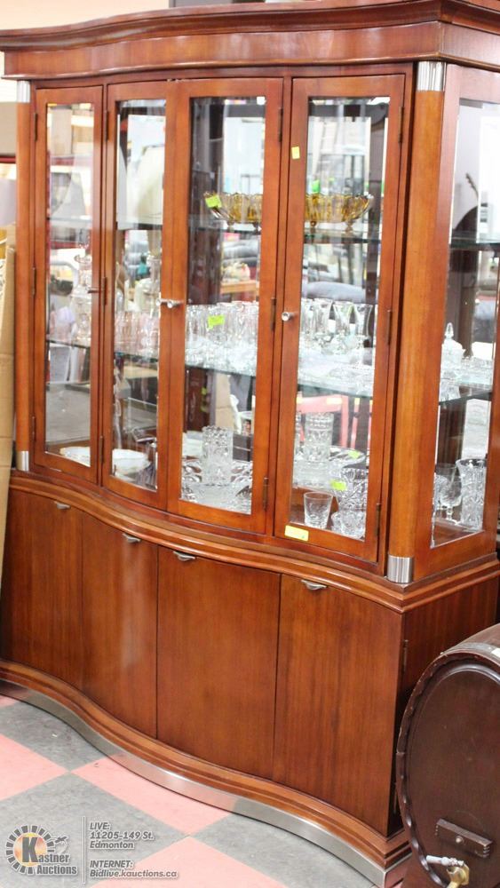 BEVELLED GLASS, 2 INTERIOR LIGHTS, 1 PULLOUT DRAWER, ADJUSTABLE BOTTOM SHELVES 7/16" GLASS. 18"X63"X83"H