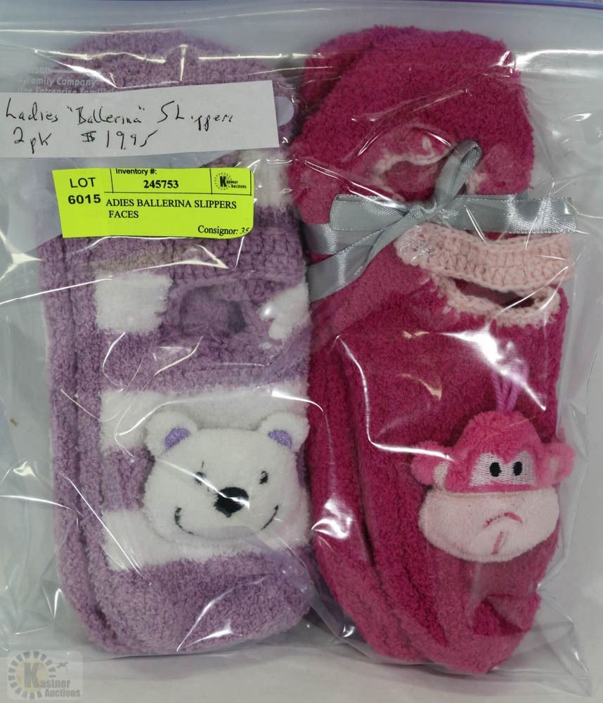 2PK LADIES BALLERINA SLIPPERS WITH FACES