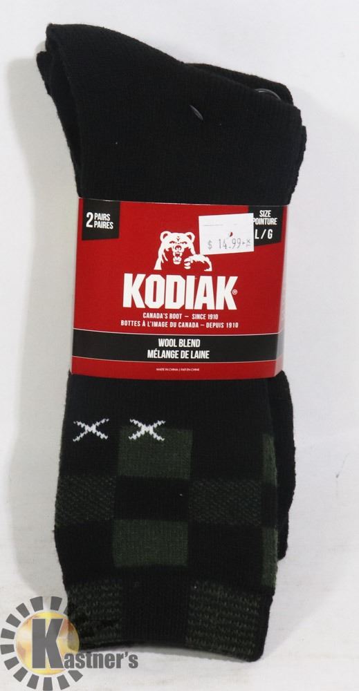 2PK OF KODIAK WOOL BLEND SOCKS; SIZE L/G