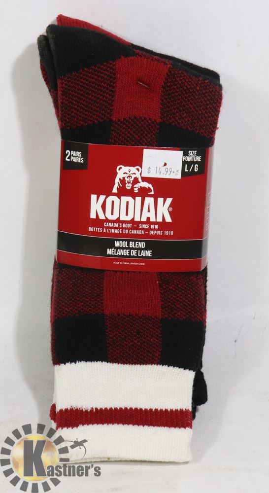 2PK OF KODIAK WOOL BLEND SOCKS; SIZE L/G