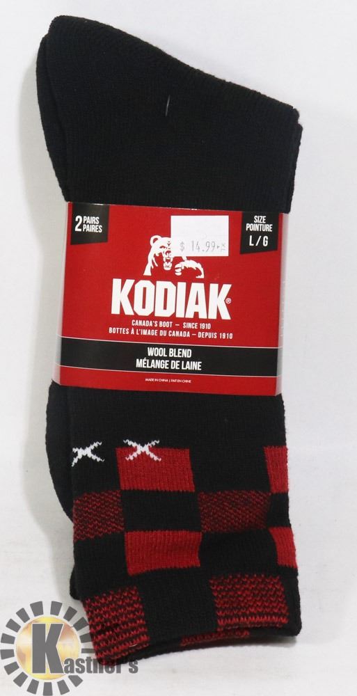 2PK OF KODIAK WOOL BLEND SOCKS; SIZE L/G