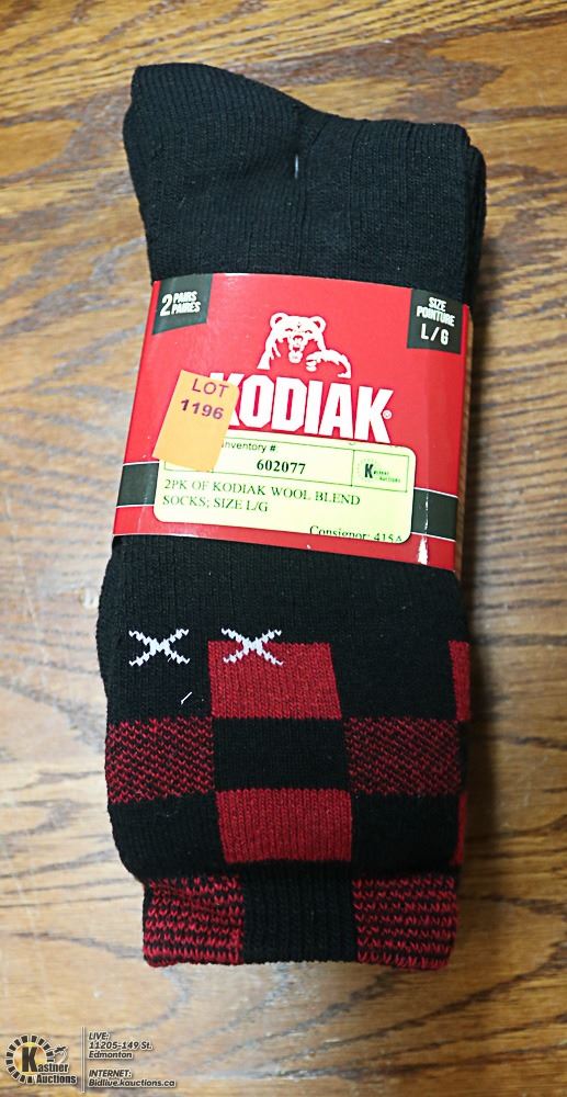 2PK OF KODIAK WOOL BLEND SOCKS; SIZE L/G
