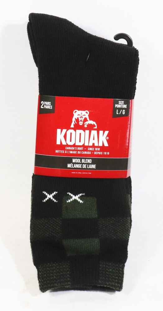 2PK OF KODIAK WOOL BLEND SOCKS; SIZE L/G