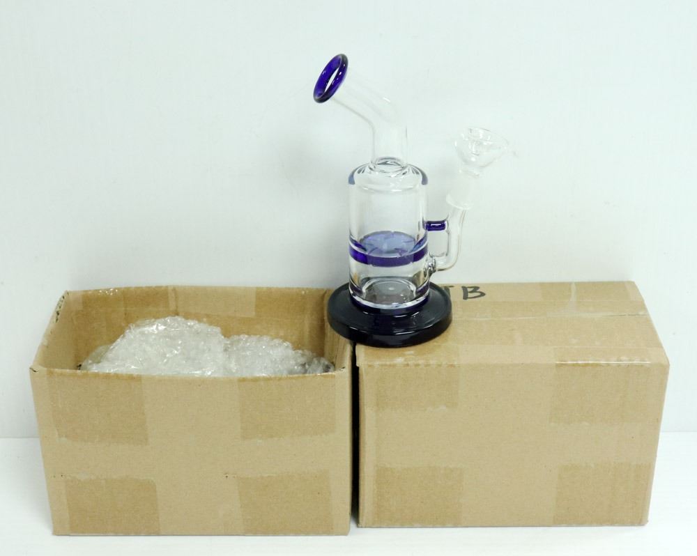 2PK OF SMALL GLASS BONGS; CLEAR/ BLUE