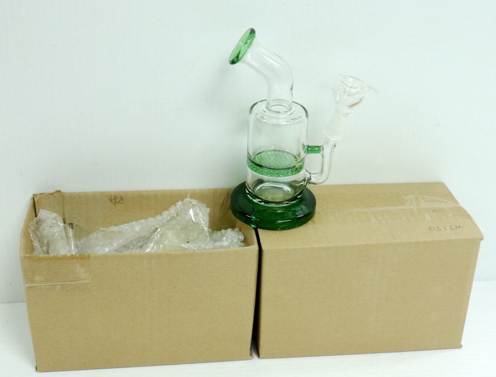 2PK OF SMALL GLASS BONGS; CLEAR/ GREEN