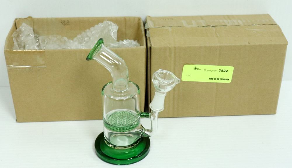 2PK SMALL GREEN GLASS BONGS *MUST BE 18+ TO BID*