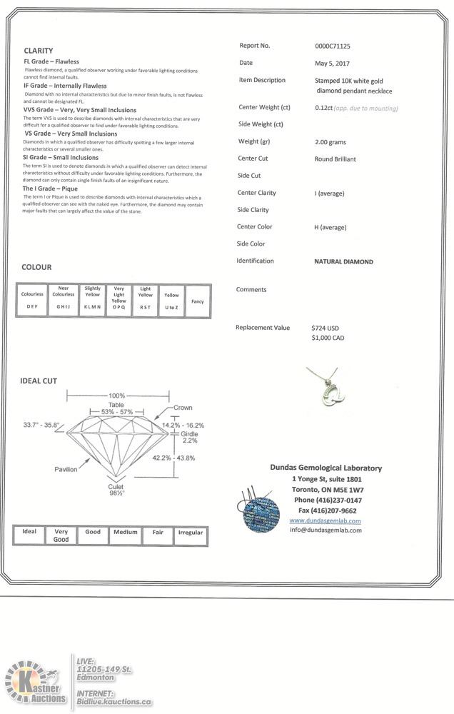 WITH COA -3 - AC8 - 10K WHITE GOLD DIAMOND (0.12CT) "Q" INITIAL NECKLACE. SUGGESTED REPLACEMENT VALUE $1000.00