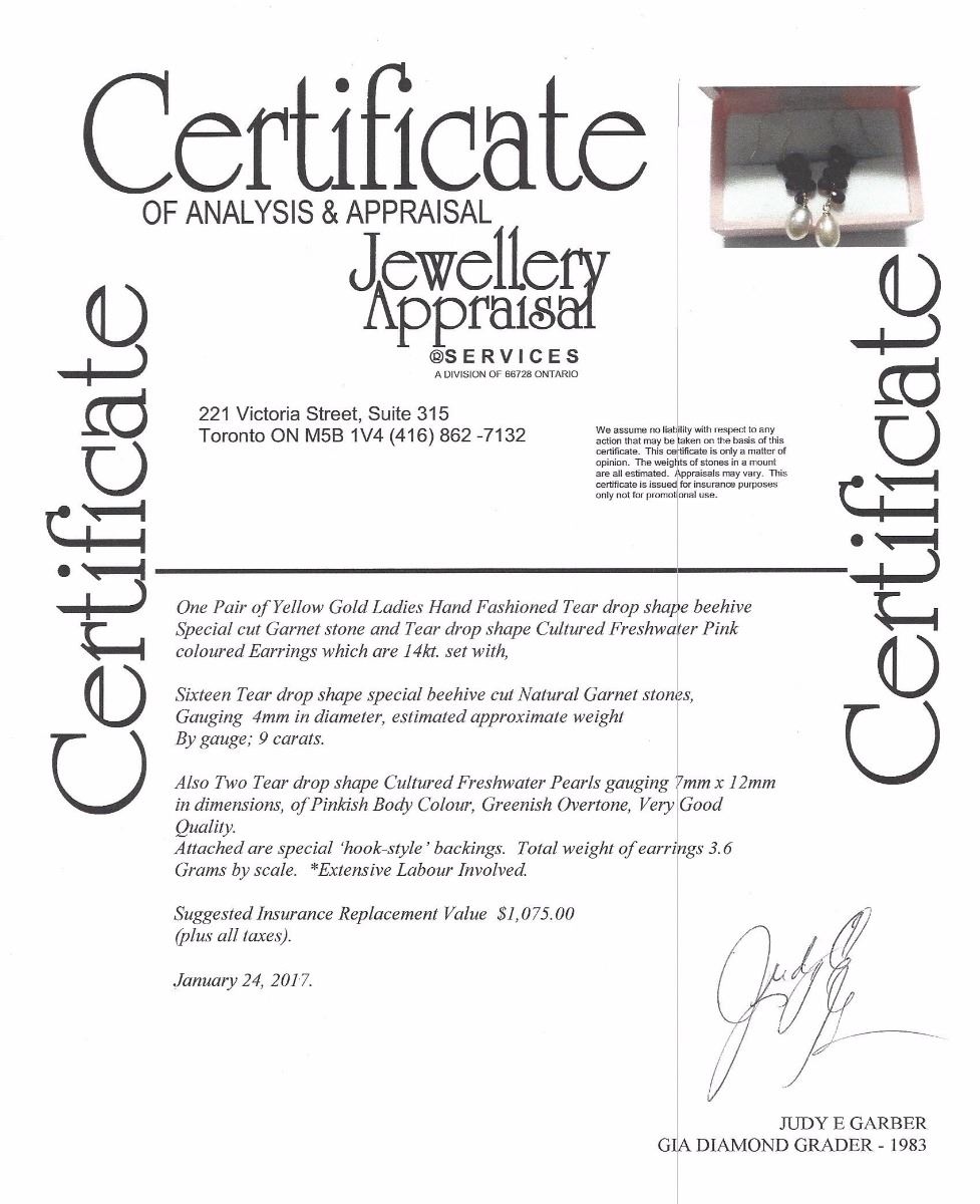 EARRINGS. WITH COA - SUGGESTED REPLACEMENT VALUE $1,075.00