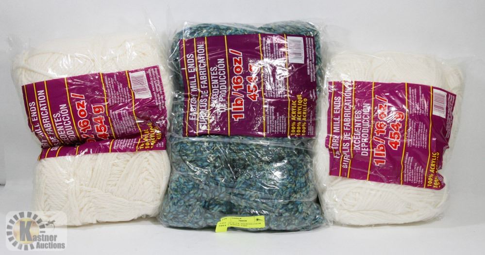 3 BAGS OF 1LB  ASSORTED COLOR 100%  ACRYLIC YARN