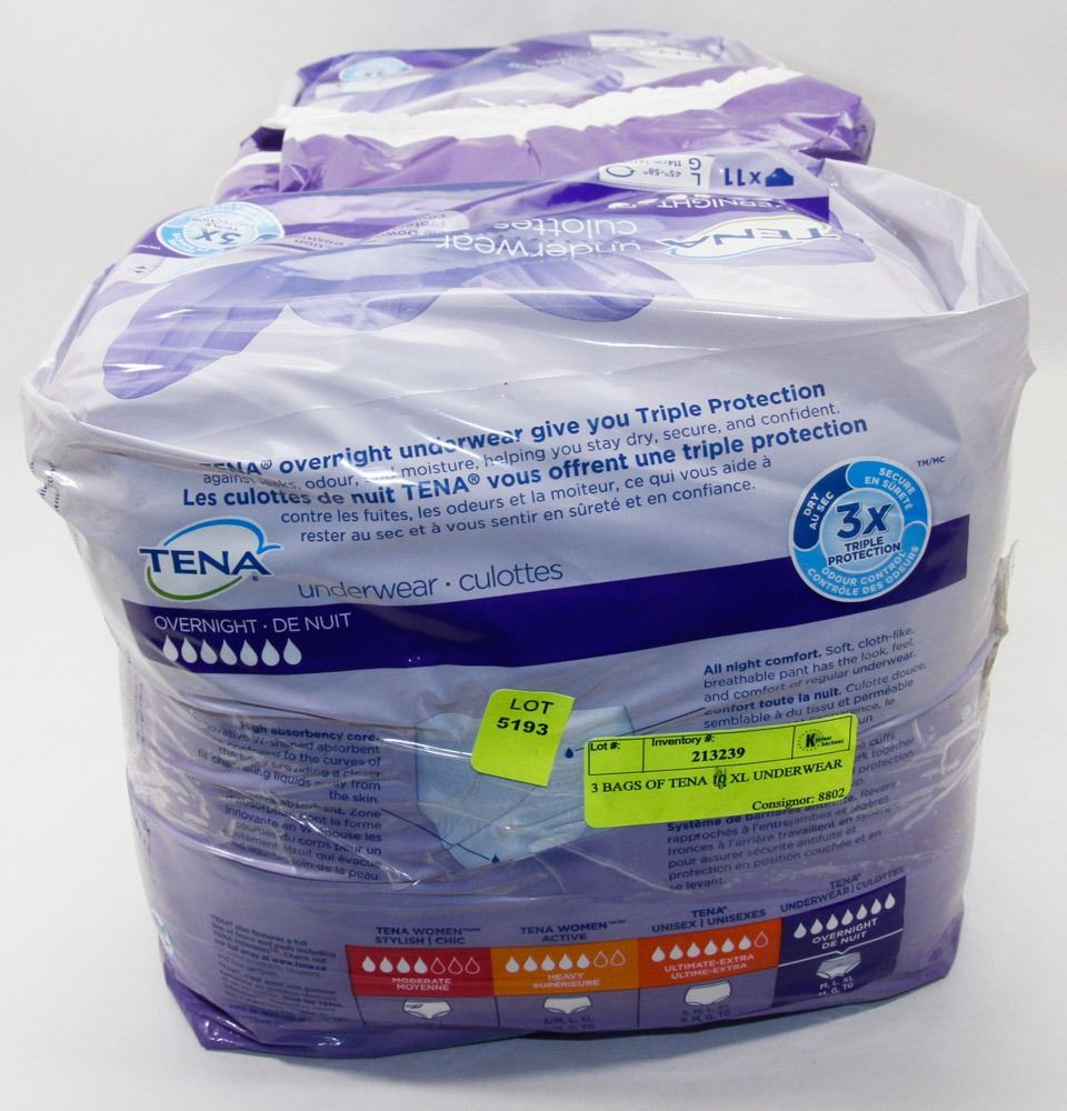 3 BAGS OF TENA ASST SIZE UNDERWEAR