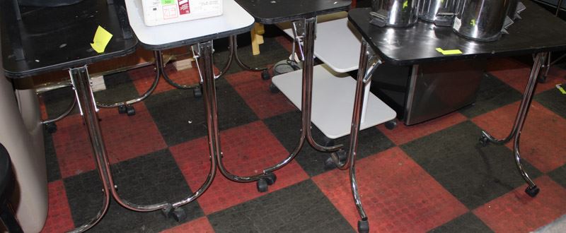 3 BLACK & 1 WHITE TABLE ON CASTORS