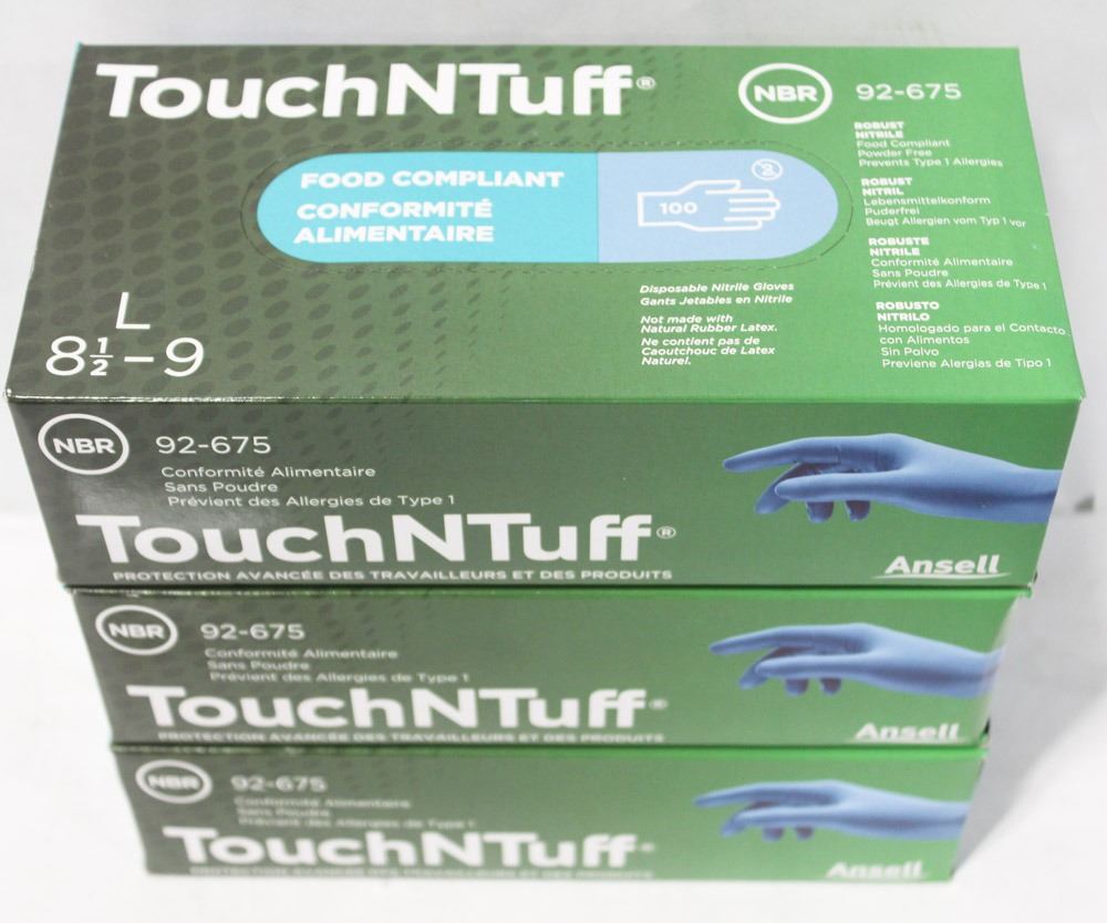 3 BOXES ANSELL TOUCH'N'TUFF FOOD COMPLIANT NITRILE