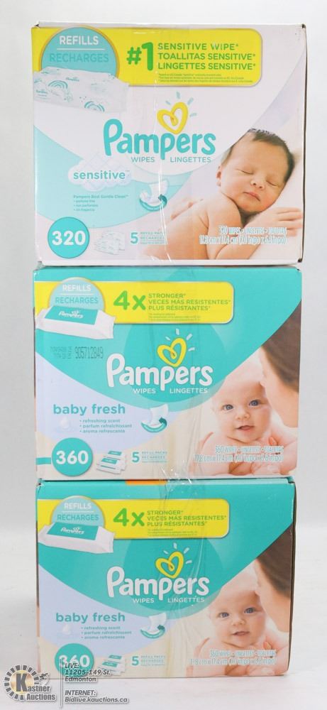 3 BOXES OF 320 PAMPERS WIPE REFILLS