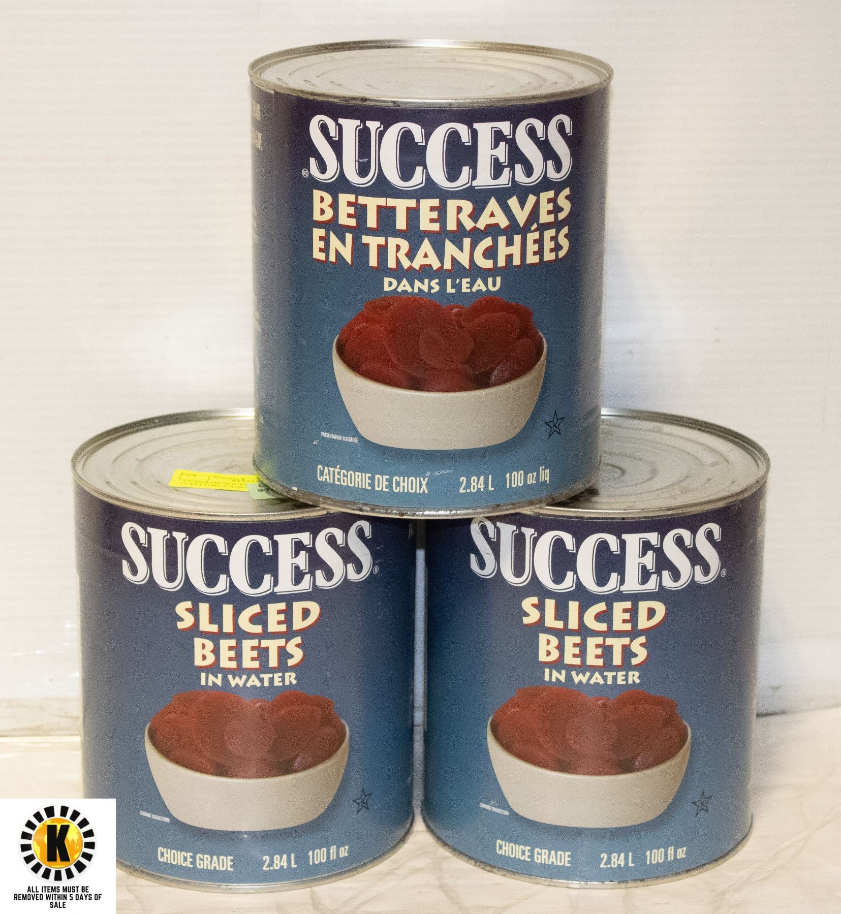3 CANS OF SLICED BEETS BB 8/23 (2.84 LITRE CANS)