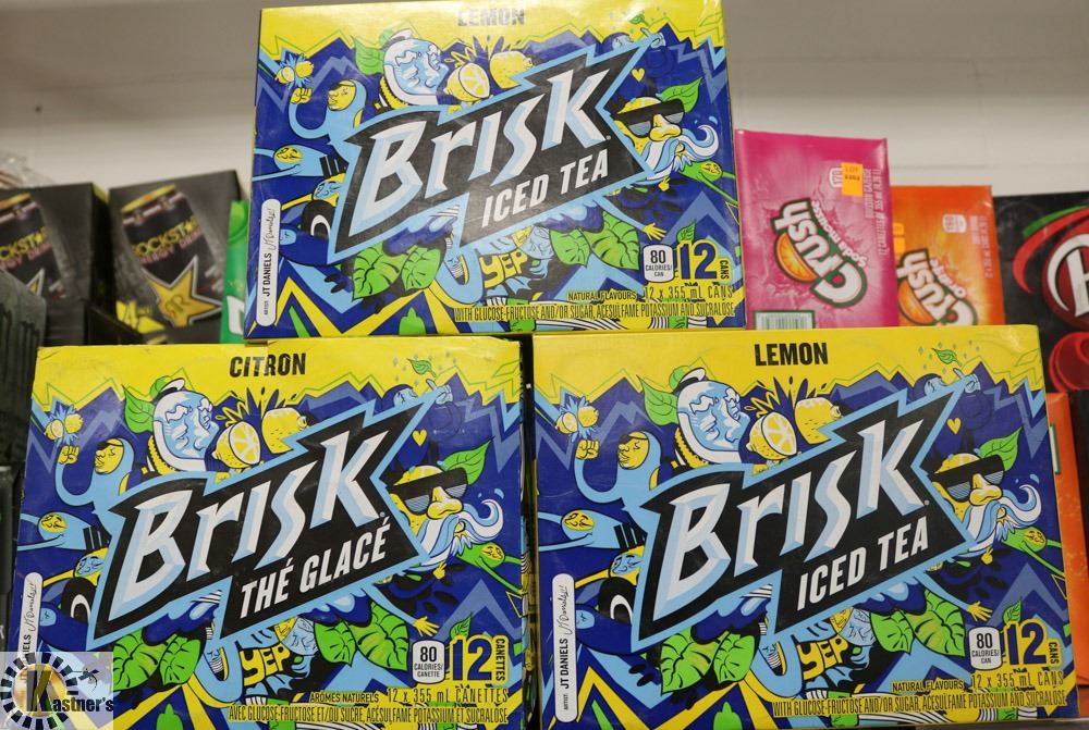 3 CASES OF 355ML BRISK 12PK ICED TEA.