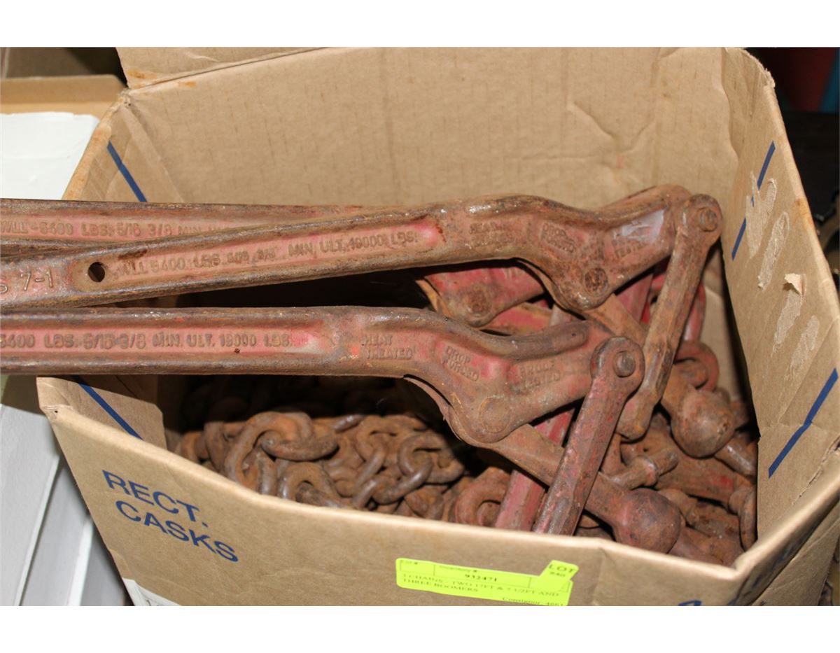 3 CHAINS - TWO 17FT & 7 1/2FT AND THREE BOOMERS