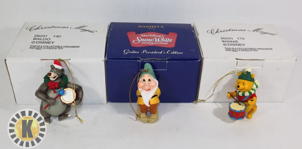 3 CHRISTMAS ORNAMENTS- BALOO, WINNIE, AND SNOW WHITE