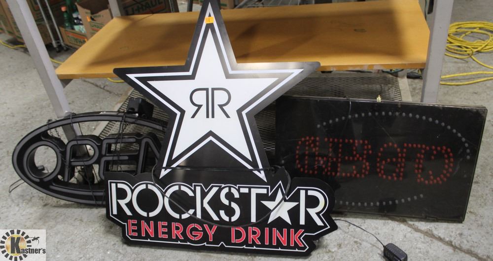 ROCKSTAR ENERGY DRINK/ 2 OPEN SIGNS. *DID NOT TURN ON*