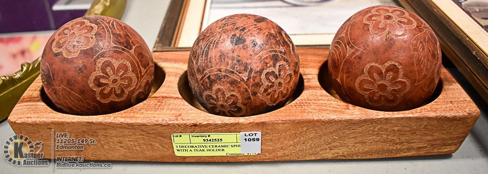 3.5" CERAMIC SPHERES WITH A TEAK HOLDER- NONE