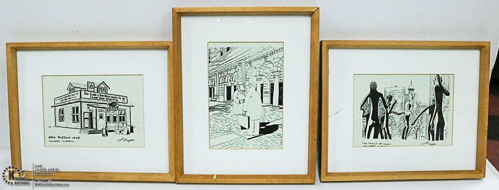 3 DRAWINGS OF CALGARY LANDMARKS BY L CONPER