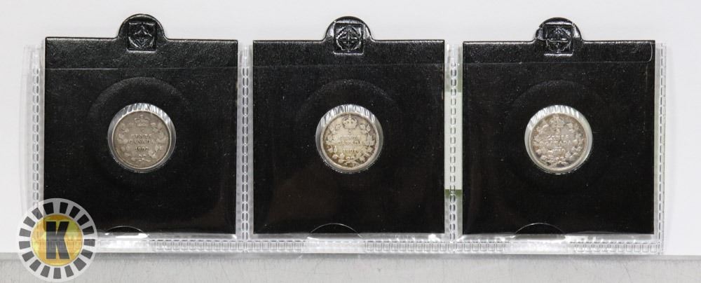 3- EDWARDIAN CANADIAN SILVER 5 CENT "FISHSCALES"