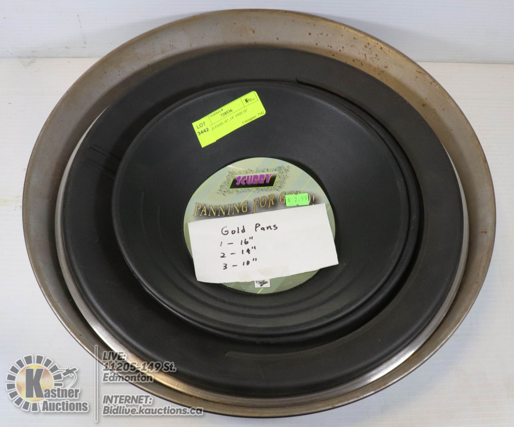 3 GOLD PANS 16", 14" AND 10"