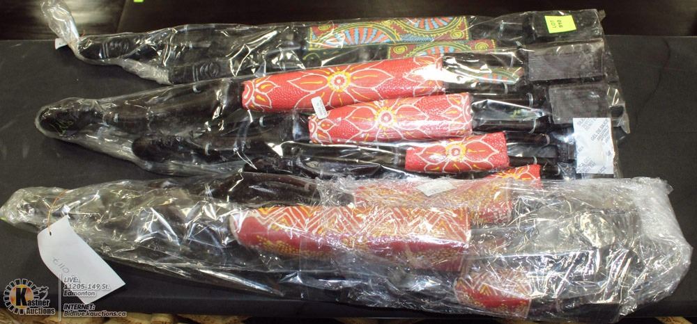 3 GROUPS OF 4 WOOD CARVED AFRICAN ORNAMENTS