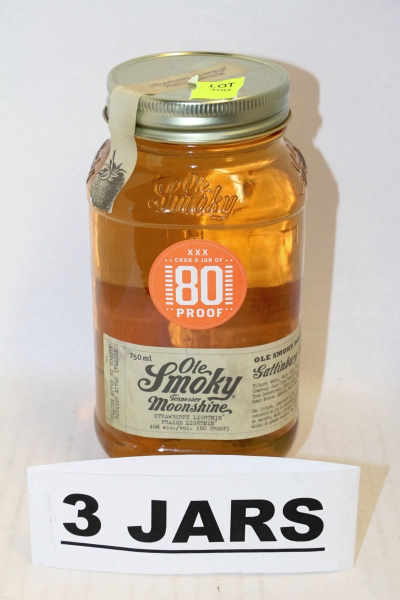 3 JARS OF OLE SMOKY STRAWBERRY LIGHTNIN' MOONSHINE