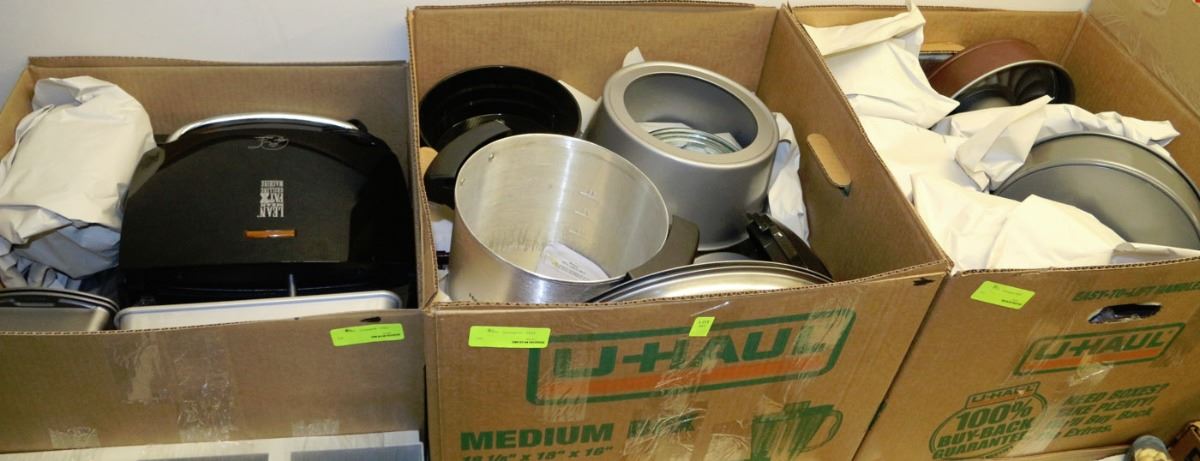3 LARGE BOXES OF KITCHEN BAKEWARE