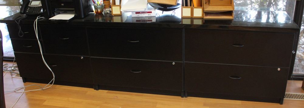 3 LATERAL CABINETS INCLUDING GRANITE TOP
