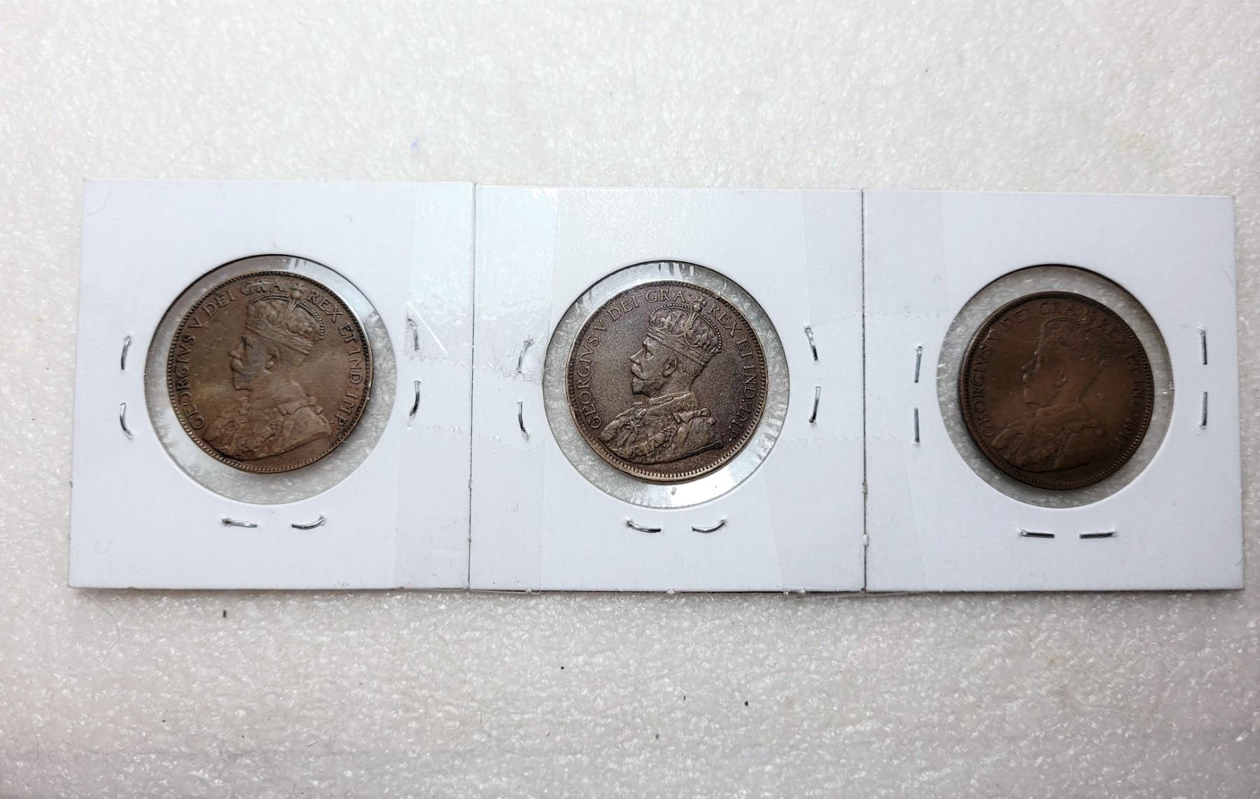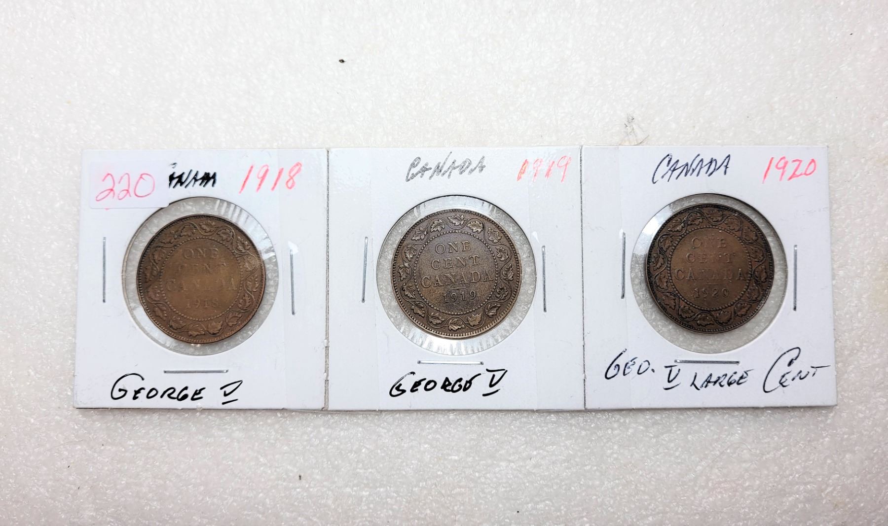 3) LOT OF 3 CANADIAN LARGE PENNIES, 1918, 1919