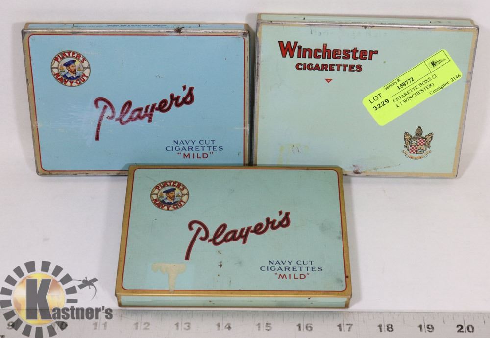 3 METAL CIGARETTE BOXS (2 PLAYER & 1 WINCHESTER)