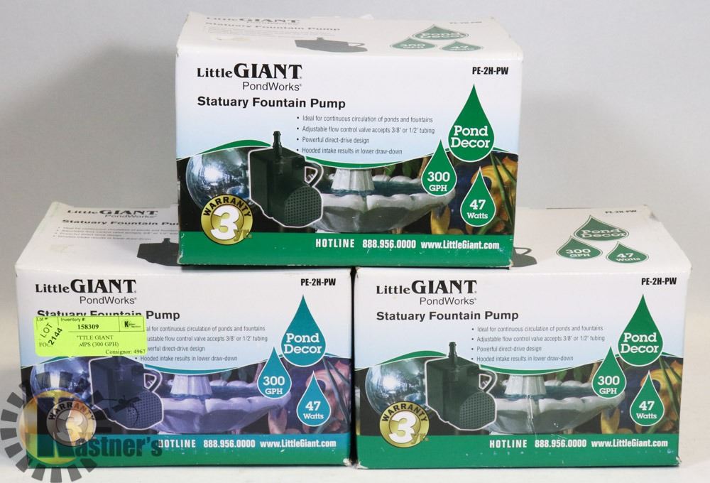 3 NEW 110V LITTLE GIANT FOUNTAIN PUMPS (300 GPH)